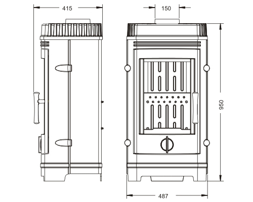 Salida de humos 150 mm.