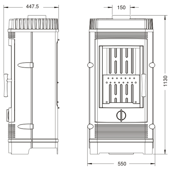 Salida de humos 150 mm.