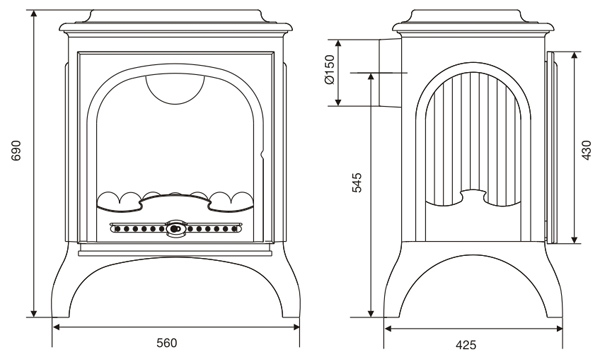 Salida de humos 150 mm.